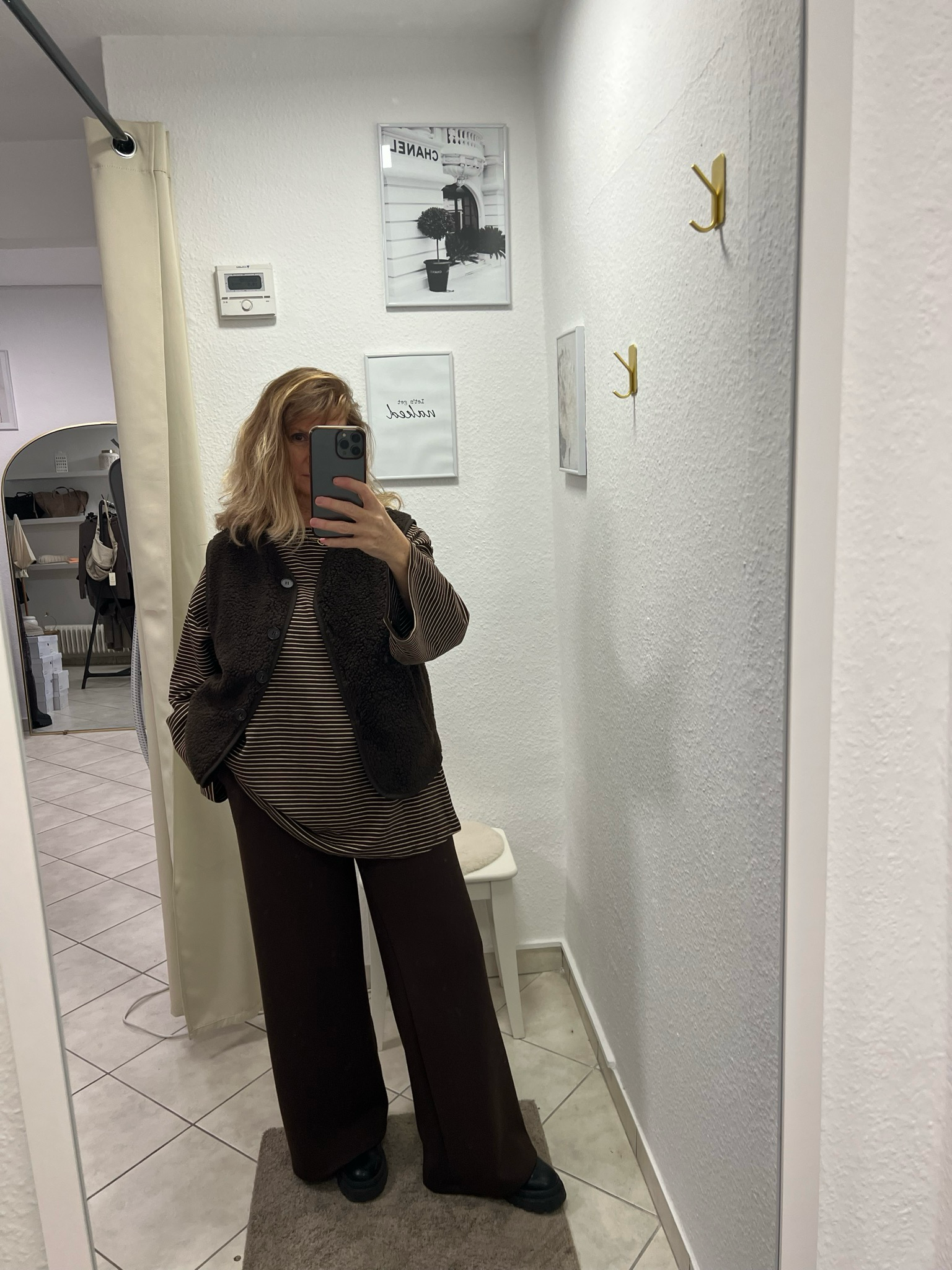 Elegante Weste in dunklem Braun mit durchdachtem Design für vielseitige Kombinationsmöglichkeiten. Die großzügigen Knöpfe ermöglichen einfaches An- und Ausziehen und setzen gleichzeitig ein stilvolles Akzent. Das flauschige Material bietet angenehmen Tragekomfort und wärmende Eigenschaften. Die Einheitsgröße 34-42 macht diese Weste zu einer praktischen Wahl für verschiedene Körperformen. Ein zeitloses Stück, das sich mühelos zu zahlreichen Outfits kombinieren lässt.